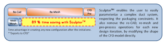 Sculptor enabled optimization of the HVAC design resulting in significantly improved performance with an 89 % time savings and a 90% cost savings to the customer as compared to other methods.
