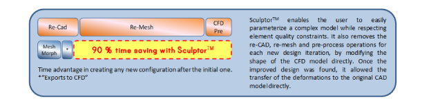 Sculptor enabled optimization of the aerodynamic design with a 90 % time savings and as compared to other methods.