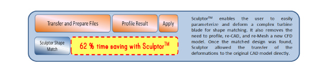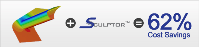 Sculptor enabled the customer to match "hot" turbine blade models to "cold" shape with a 62 % time savings and a 62% cost savings to the customer when compared to other methods.
