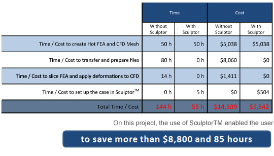Sculptor enabled evaluation of 124 design variants with an 86 % time savings and an 86% cost savings to the customer when compared to other methods.